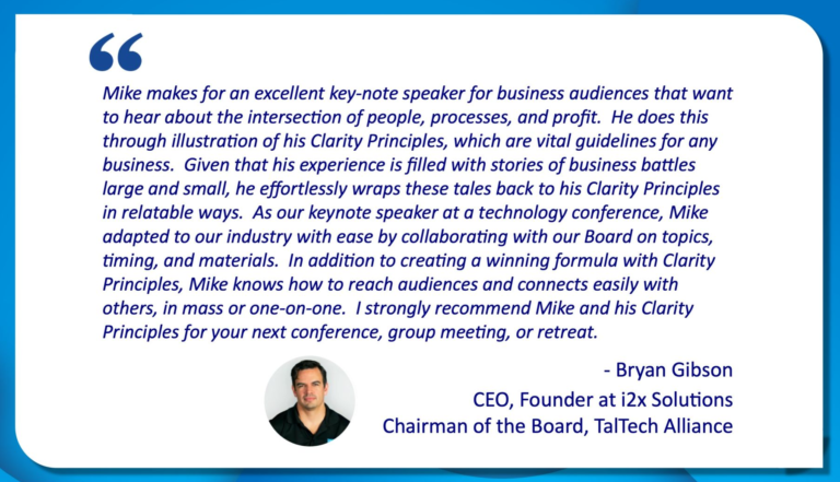 “We were burning everyone out trying to keep up. Mike helped us see what was missing. The Clarity Principles gave us a way to solve problems without just throwing more people at them.” – COO, Tech Services